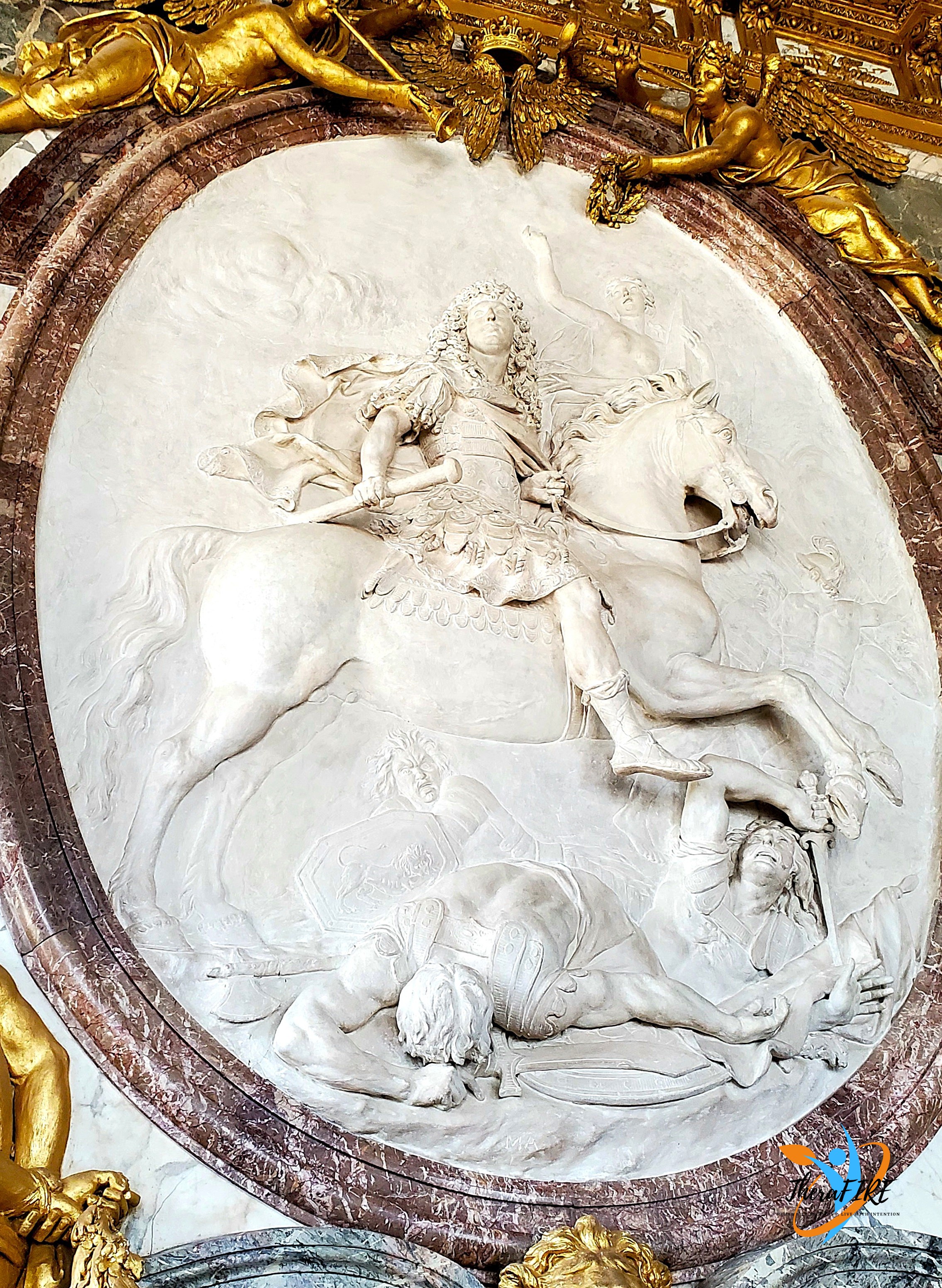 From there, we moved into the War Room. The room was a stark contrast with its powerful paintings by Le Brun. These works commemorate French military victories and remind us that life at Versailles wasn’t all about parties and fancy clothes. The Apollo Room, originally Louis XIV’s throne room, was next. It’s bathed in sunlight and filled with references to the Sun God, Apollo. The room is a fitting tribute to the self-proclaimed “Sun King.”