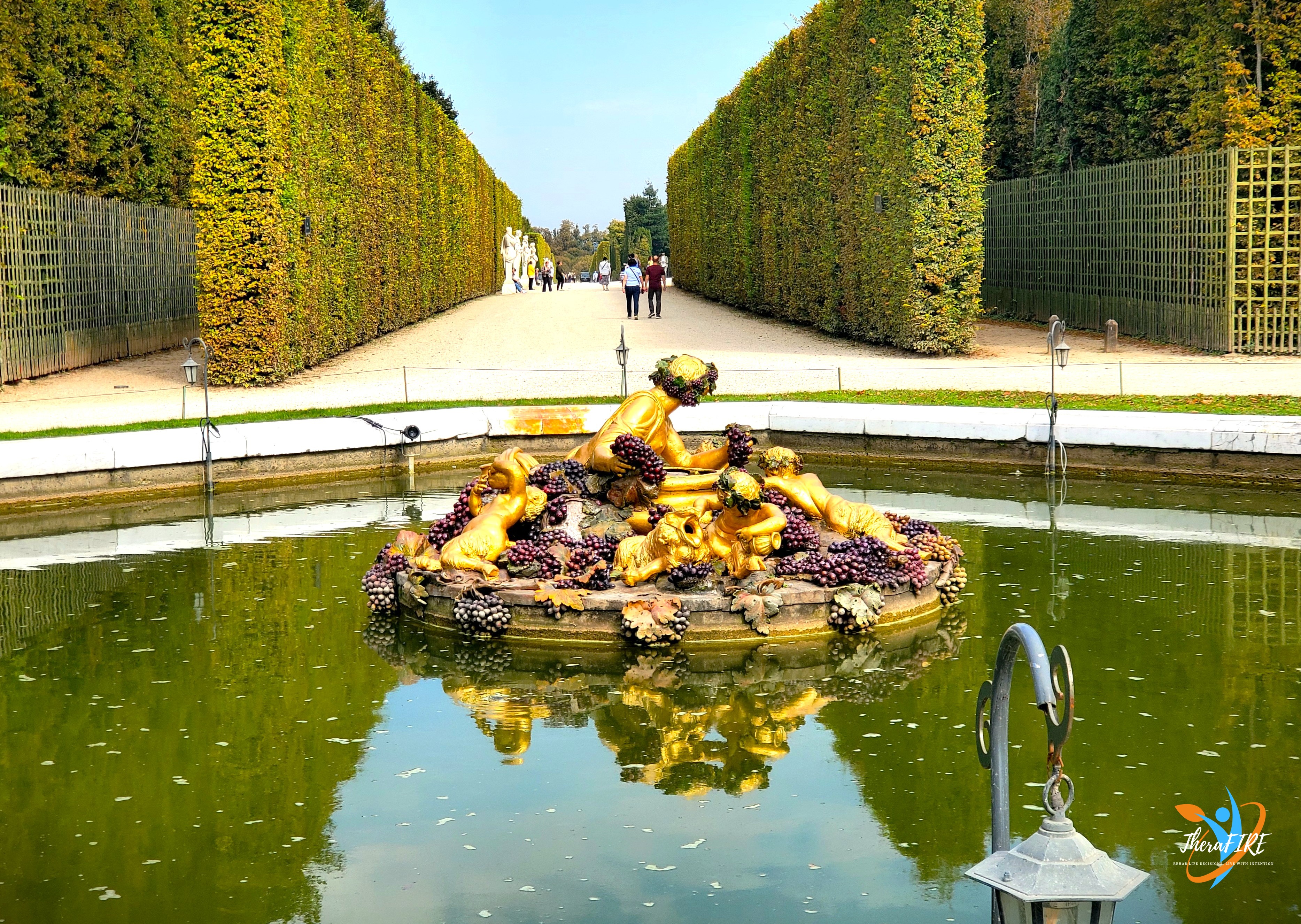 Be warned: exploring the gardens requires a ton of walking! If you’re not up for that, there are a couple of options to give your feet a break. You can hop on the Petit Train for €8.50. It is a cute little train that chugs along a set route through the gardens. The train makes stops at key points of interest. Or, for more flexibility, you can rent a golf cart for €42 for the first hour (and €10.50 for every 15 minutes after that). Each cart fits up to 4 people. It is a good choice for families or those who want to conserve energy. Still, we decided to get our steps on. The Versailles app has a handy guide that helps us navigate the maze-like paths and discover hidden corners.