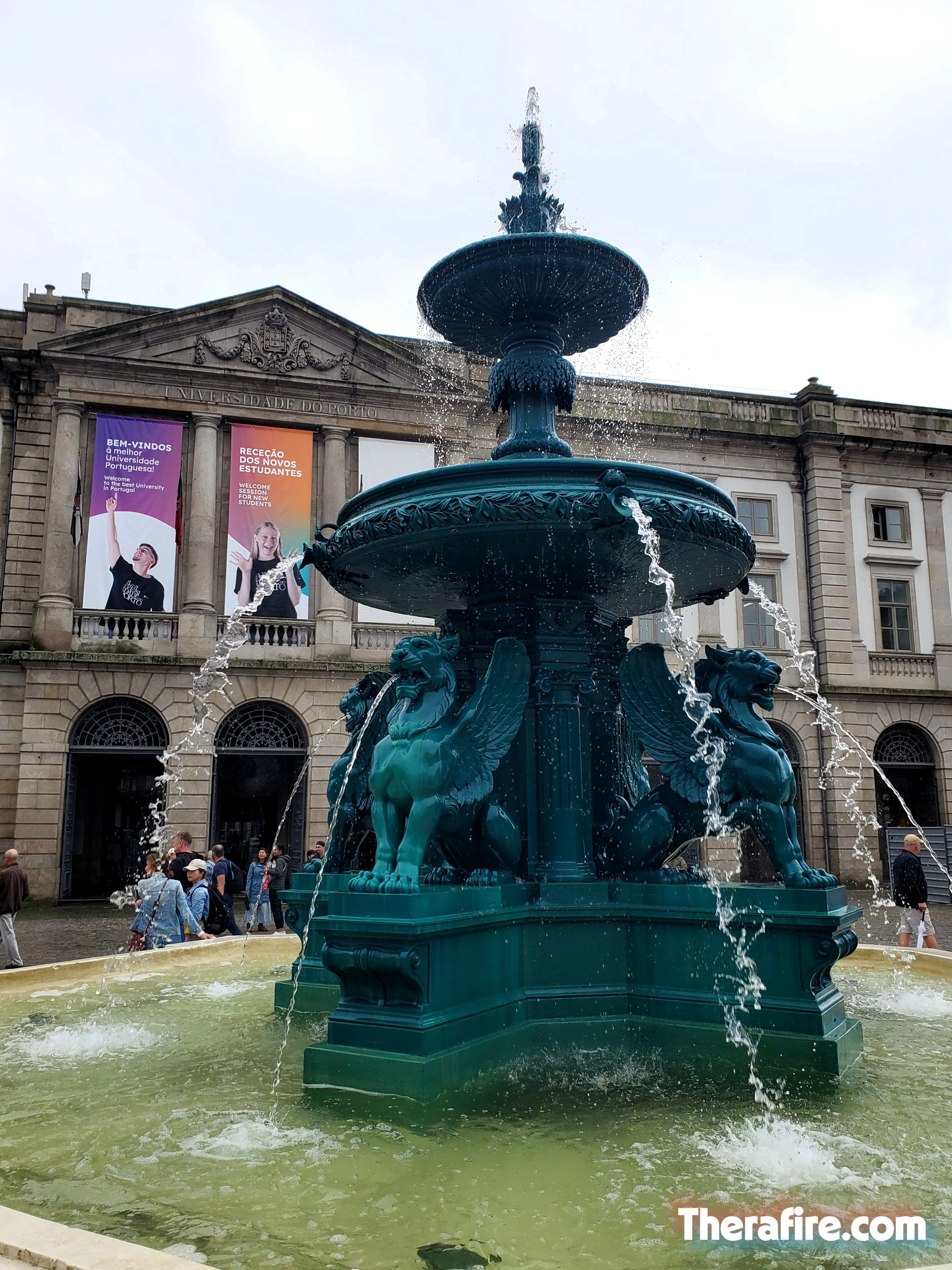 We were struck by the sheer scale of the buildings facing Avenida dos Aliados. This central boulevard is a huge pedestrian walkway with vehicle access on either side. It is flanked by imposing granite buildings that house various offices, cafes, and hotels. It leads directly up to a pool that reflects the magnificent Câmara Municipal do Porto (Porto City Hall). With its clock tower and ornate stone facade, it truly dominates the square, reflecting a sense of pride and history. Beneath the steps are the giant blue letters spelling the word PORTO.