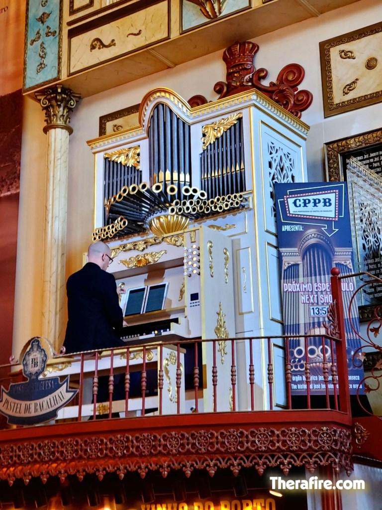 The Igreja dos Clérigos is a Baroque masterpiece, designed by Nicolau Nasoni. The shape of the church allows for a panoramic view of the lavish details of the church’s interior, as we waited for a pipe organ concert that typically takes place at noon on Wednesdays. Sculptures of religious figures, intricate marble pillars, and brass pipes from the organ adorn the church’s tall walls and ceiling.