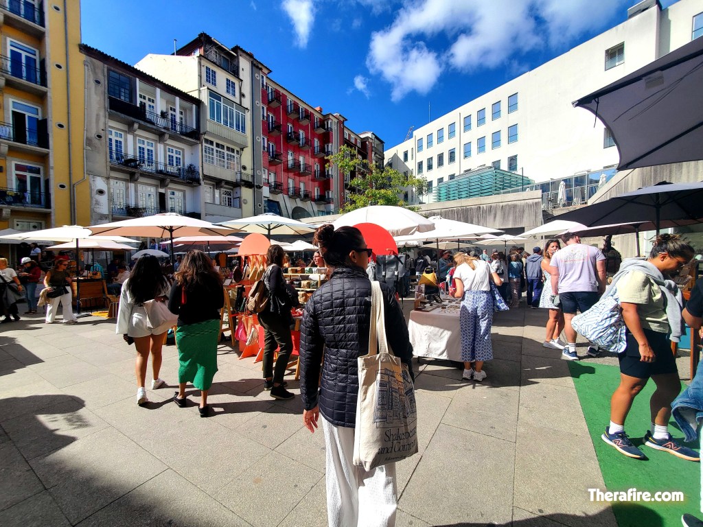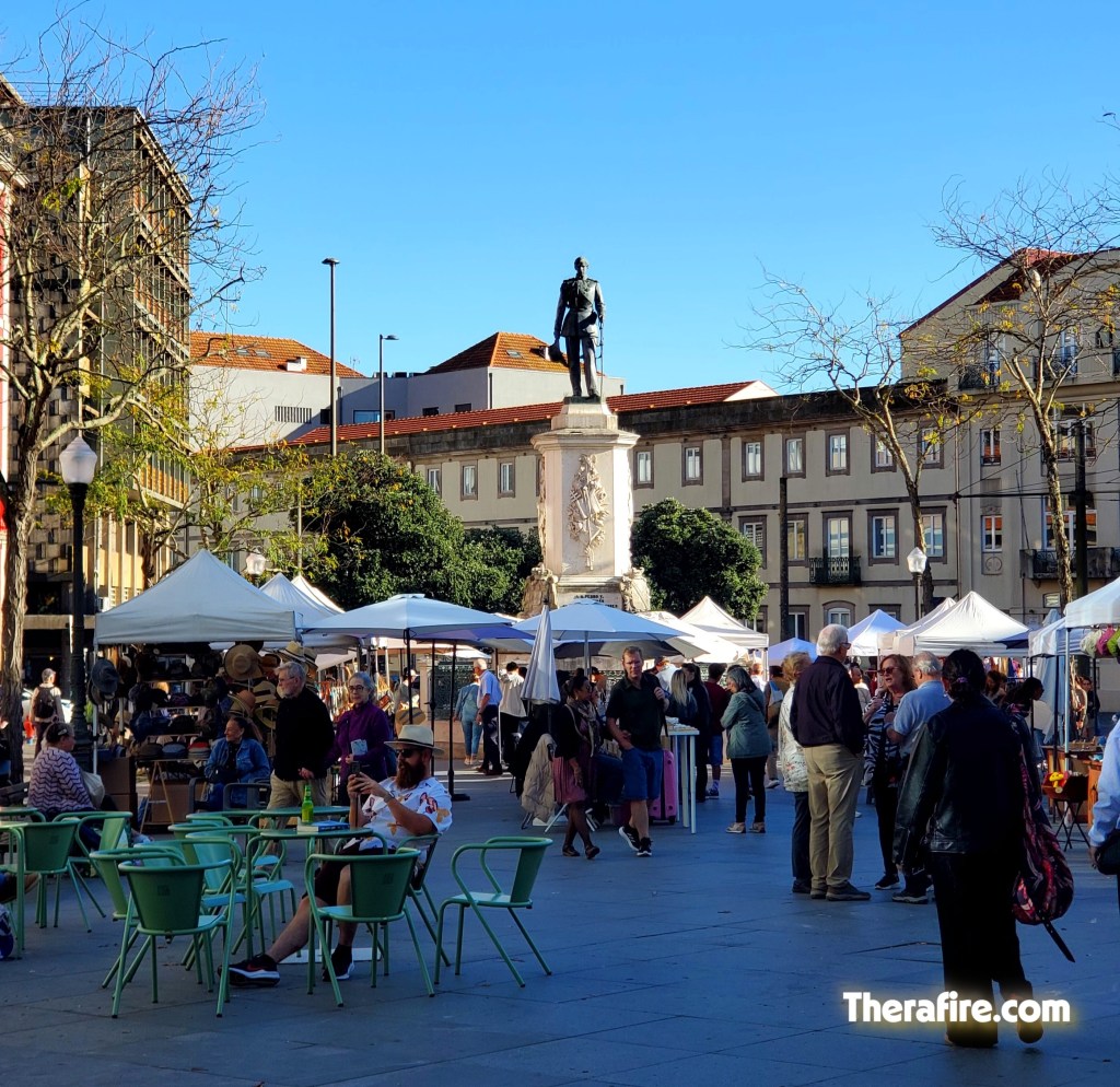 East of the Porto São Bento Station lies the Bolhão area — a neighborhood steeped in a mix of old buildings, local shops, and restaurants that offer a glimpse into everyday life in Porto. Closest to the station is the Praça da Batalha (Battle Square), a lively hub centered on the Monument to King Dom Pedro V. It is a small park that tends to be busy on weekdays due to its proximity to the nearby Batalha Metro Station. On weekends, this plaza transforms into a small flea market, where you can find a variety of unique souvenirs, including hats, leather goods, jewelry, and scented soaps.