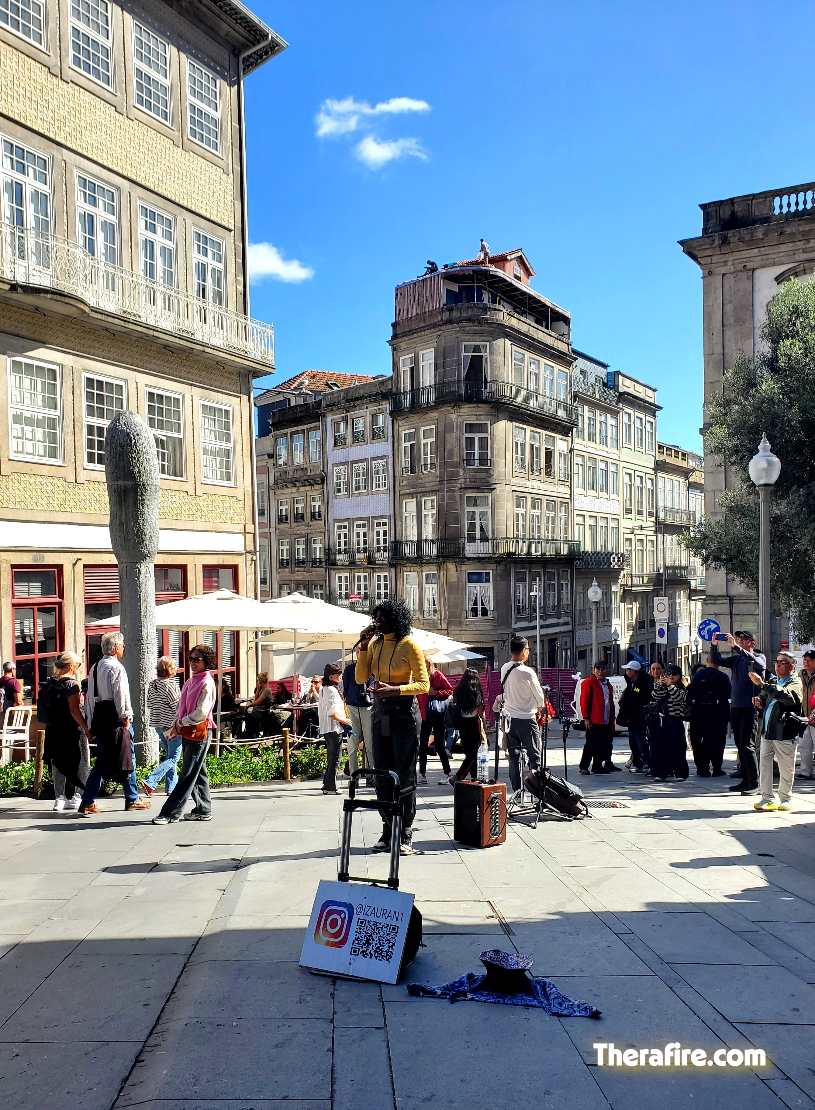 Across from the São Bento Station, we followed foot traffic into the Urban Market. An alley that leads to a vibrant and contemporary market space offering unique finds from local designers. We continued down the slope to Rua das Flores, another charming pedestrian street that leads down from the Baixa to Ribeira. This vibrant street is full of boutiques, souvenir shops, cafes, pastel de nata bakeries, restaurants, and beautiful apartment facades. When foot traffic is high, local performers showcase their talents at various points for you to enjoy.