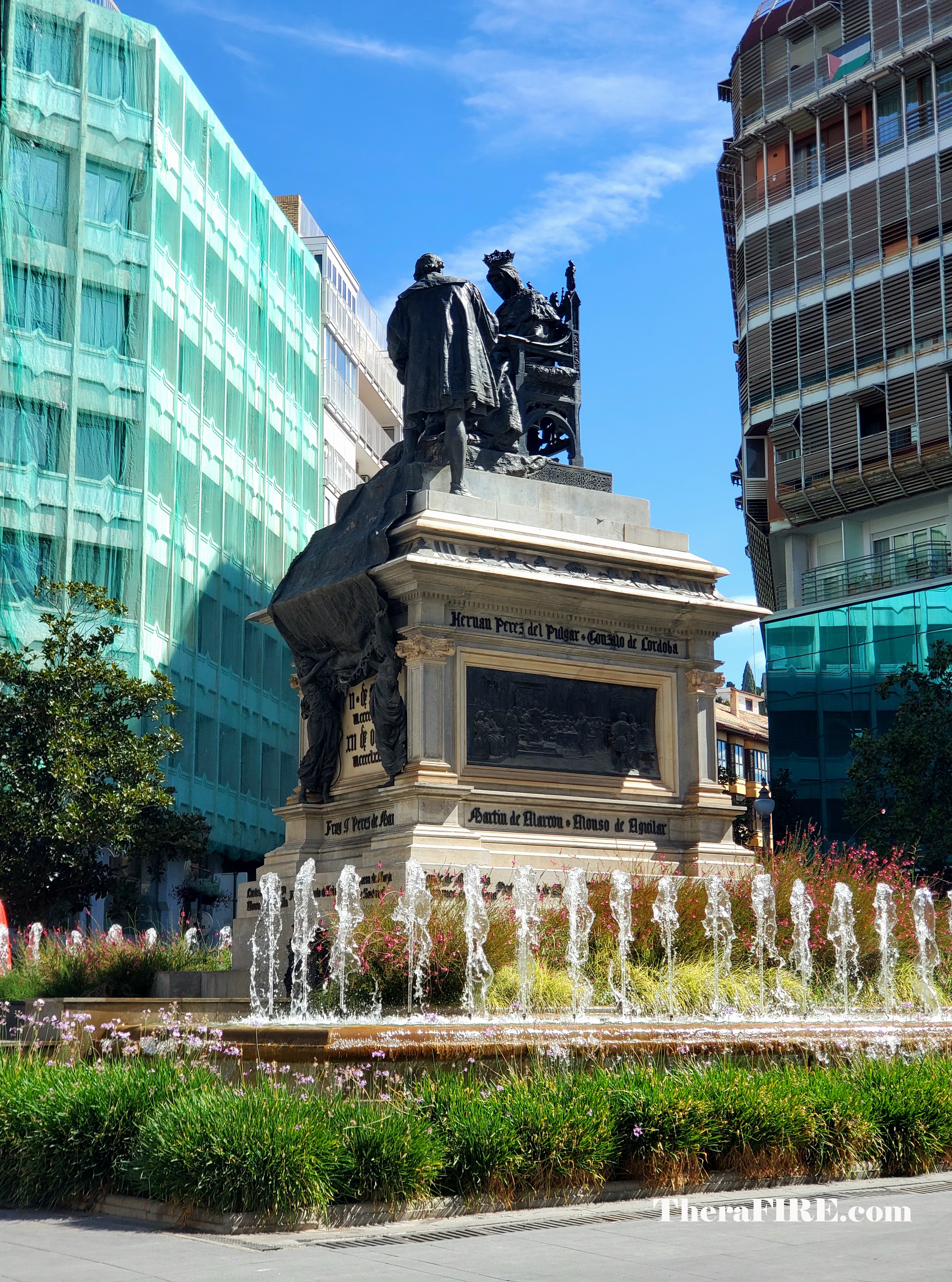 We continued walking to the intersection of Calle Reyes Católicos and Gran Vía de Colón, to see Plaza Isabel la Católica, a prominent square in the heart of Granada. It is a tribute to Queen Isabella I of Castile, featuring a bronze statue that commemorates the Queen granting Christopher Columbus the means to embark on his voyage to the Americas in 1492.