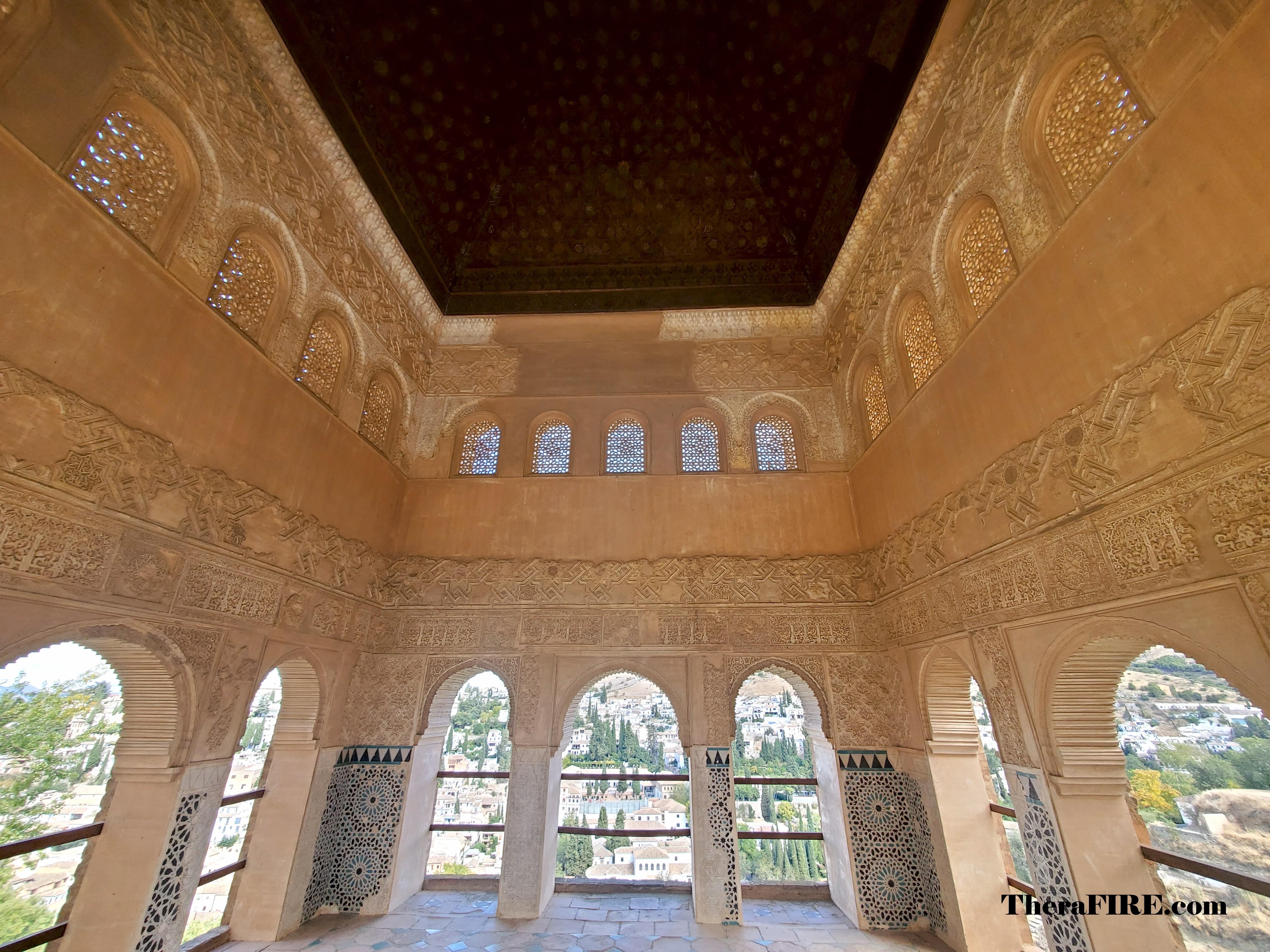 Just as the sun was beginning to set, we entered the Palacios Nazaríes. This is the most famous and artistically significant part of the Alhambra. We were mesmerized by the intricate details of the delicate stucco carvings, which resemble pages of an ancient text. The mesmerizing tile mosaics and the ornate wooden ceilings seem to defy gravity.
