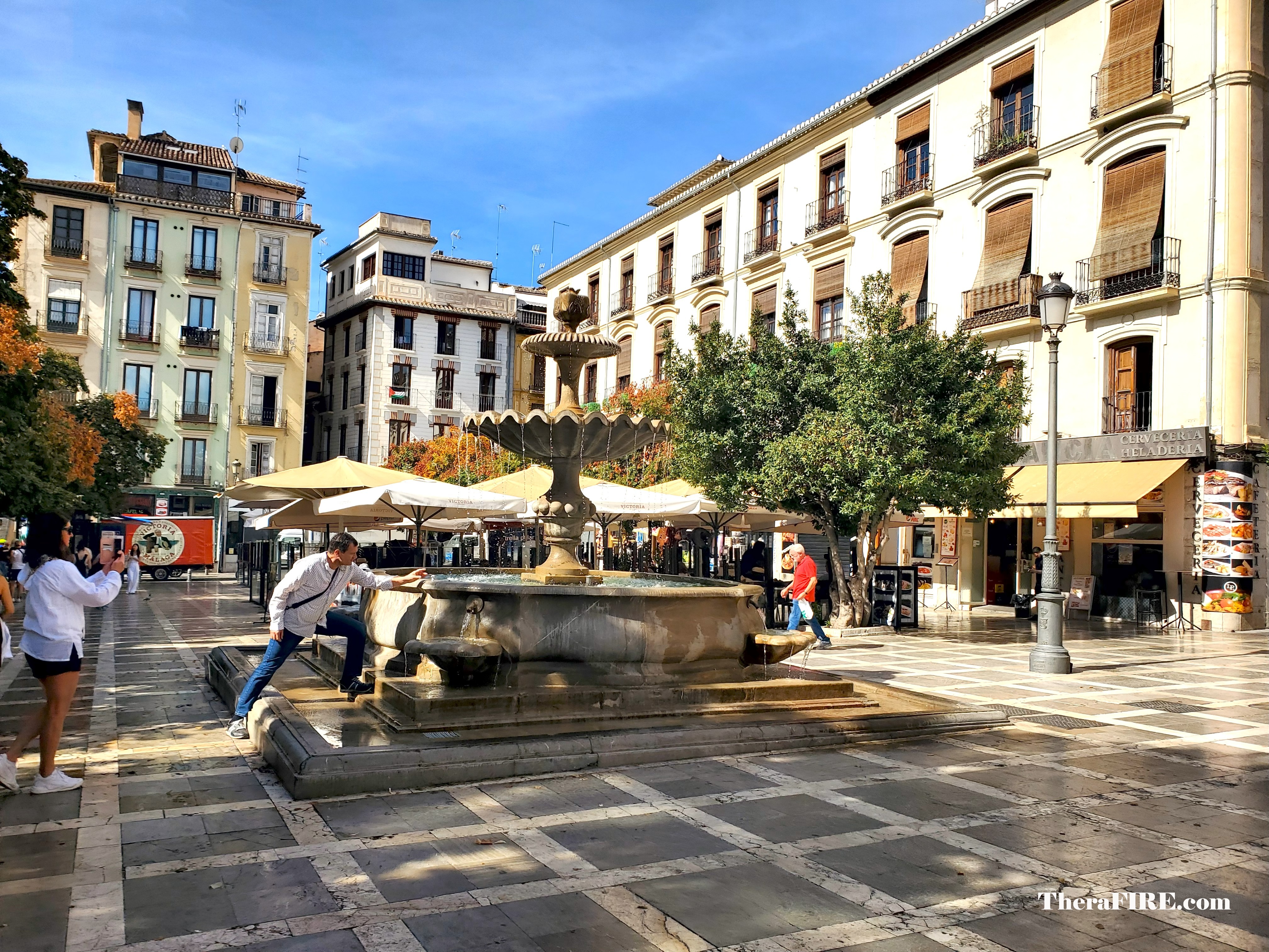 South of the cathedral, through the Alcaicería, is the Plaza de Bib Rambla. Its name, “Bib Rambla,” comes from Arabic, meaning “Gate of the Sand,” as it was a bustling hub of trade and a meeting point during the Moorish era. Today, the plaza retains that lively and vibrant atmosphere, surrounded by beautiful historic buildings with arcades and balconies.